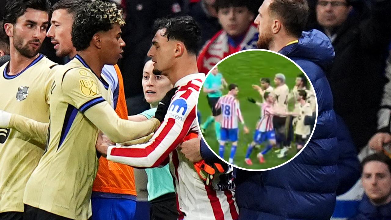 La tangana entre Lamine Yamal y Marc Pubill sobre el final del Atlético de Madrid vs. Barcelona por la ida de la Semifinal de la Copa del Rey 💥 pic.twitter.com/R2bCJyzDvE